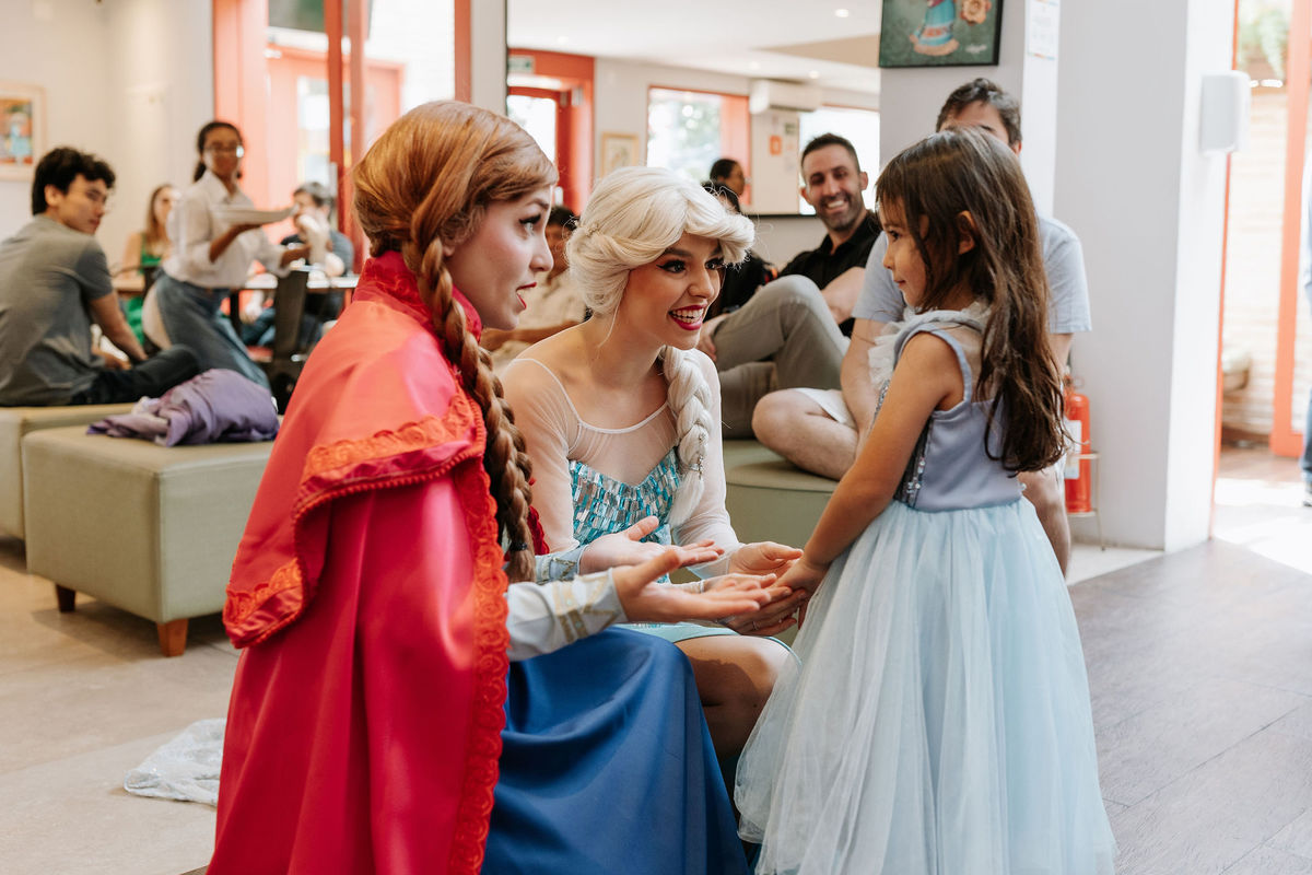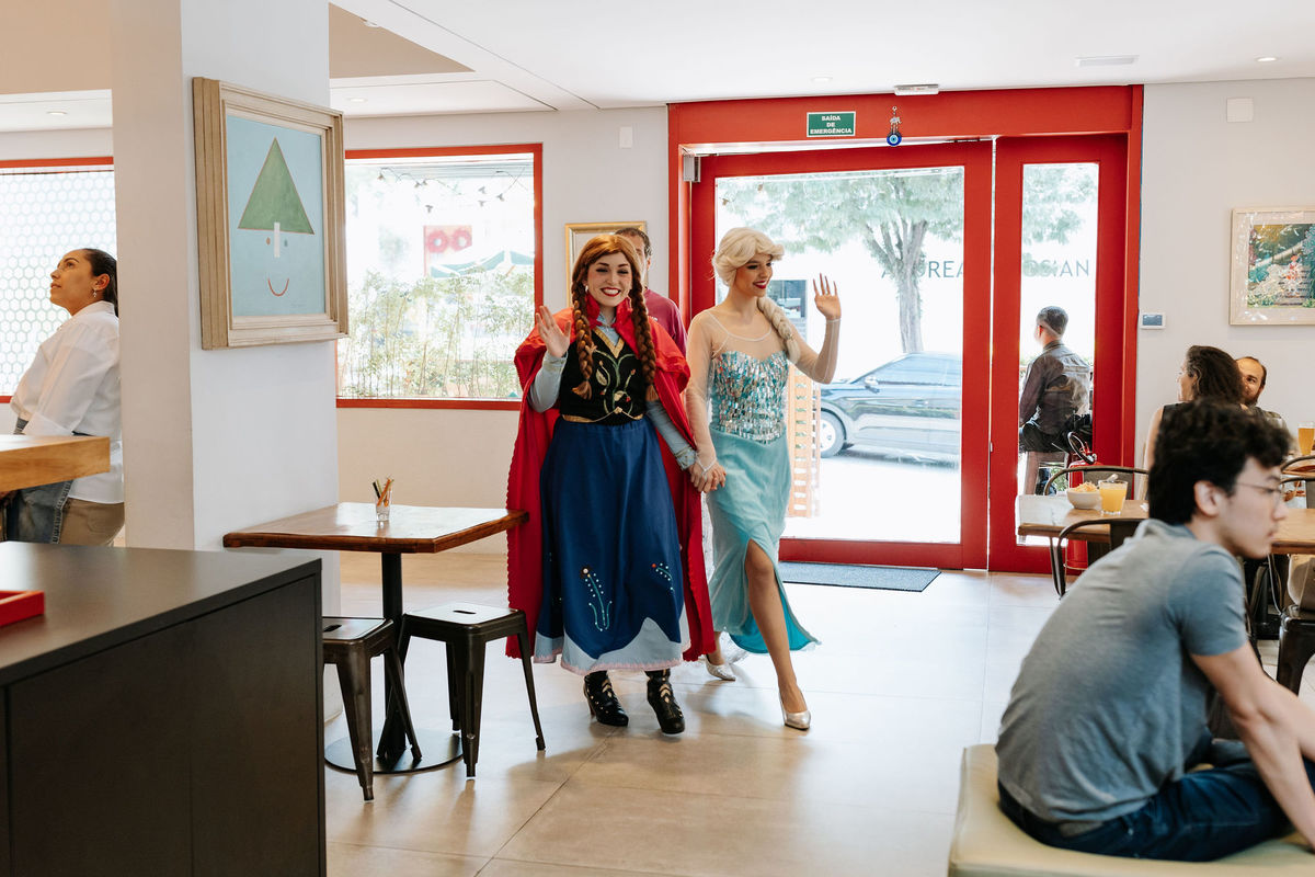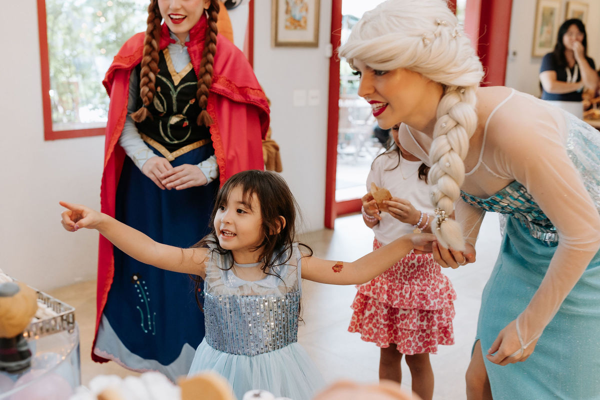 A Ana, a Elsa e o Olaf chegaram ao salão e transformaram tudo com sua magia. Foi muito bonito ver a Olie vivendo o momento mais especial da vida dela!