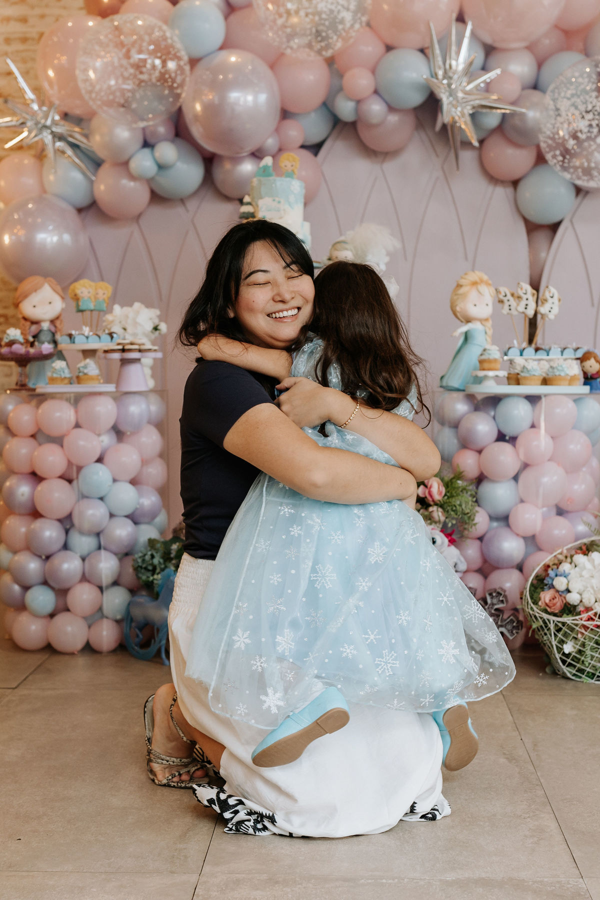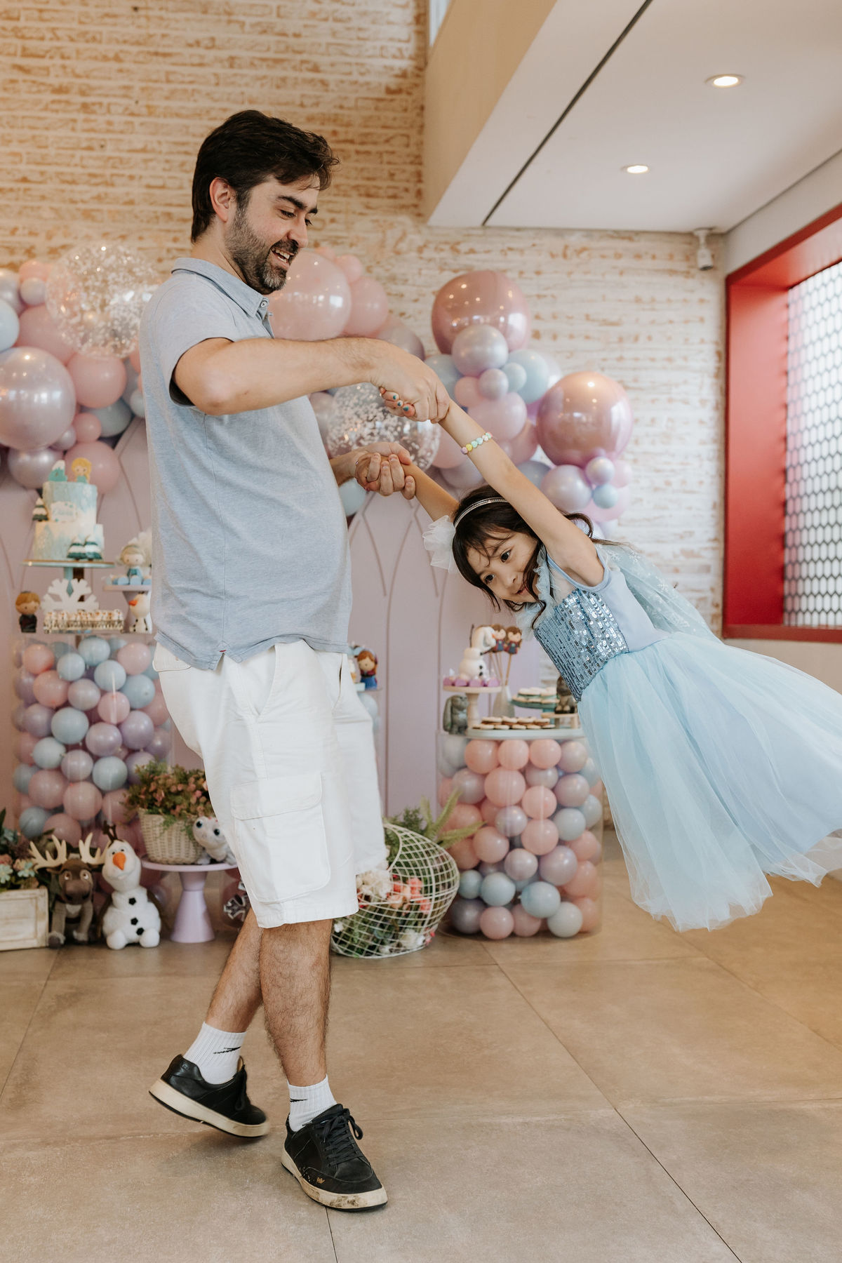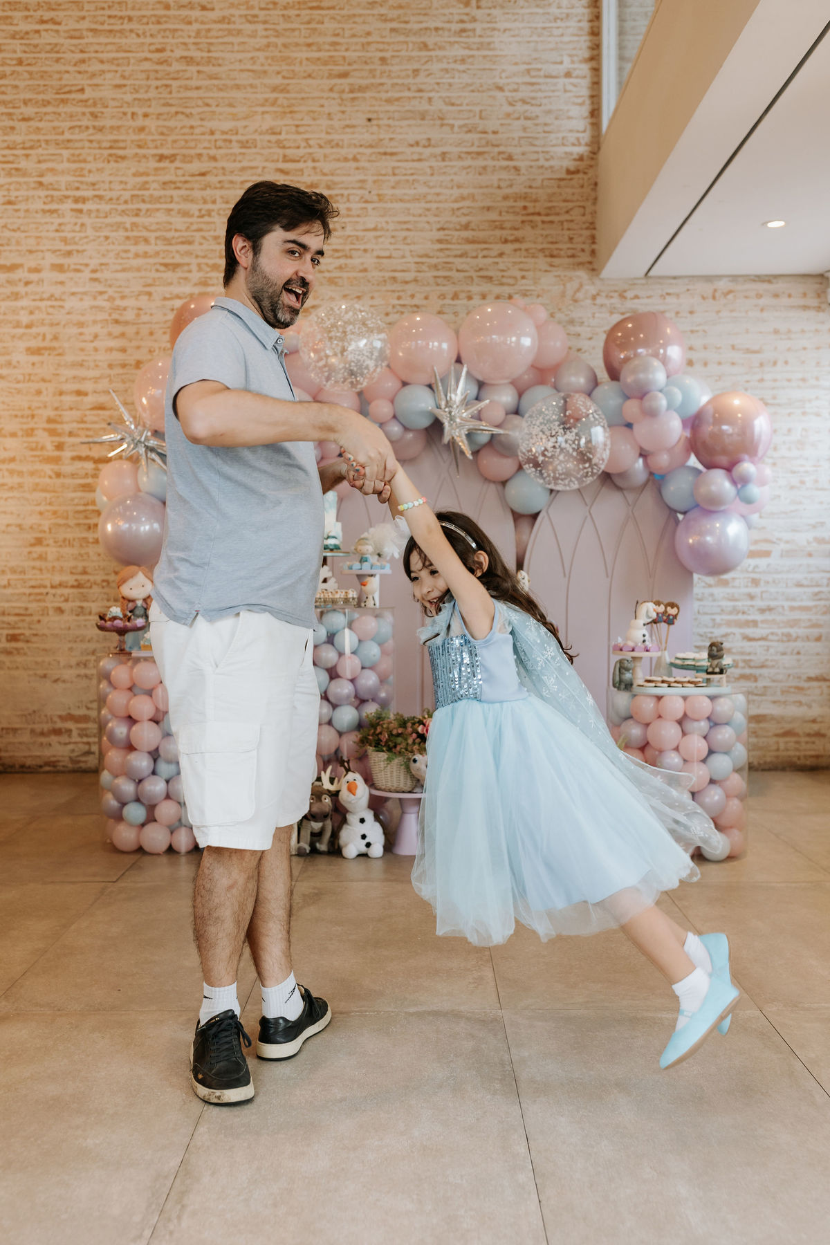 A Ana, a Elsa e o Olaf chegaram ao salão e transformaram tudo com sua magia. Foi muito bonito ver a Olie vivendo o momento mais especial da vida dela!