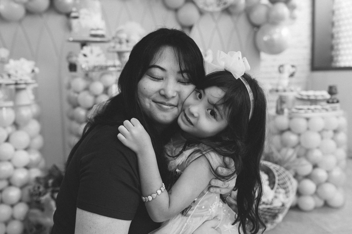 Não é o bolo. Não é a decoração. É o olhar dos pais para a filha enquanto ela sopra as velinhas. É a criança que nem percebe que está sendo fotografada porque está completamente presente, completamente feliz.