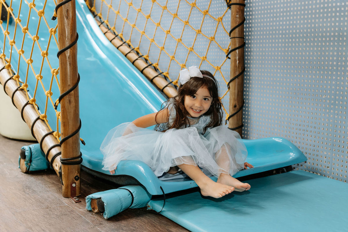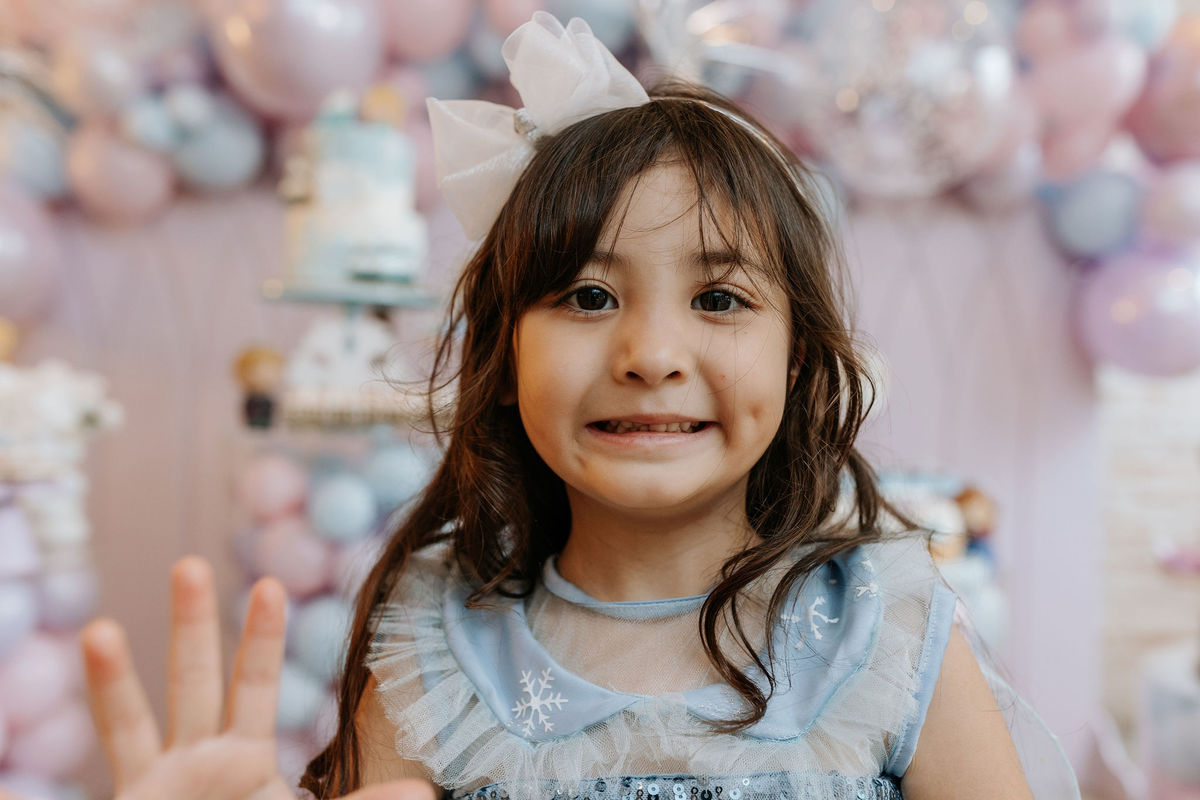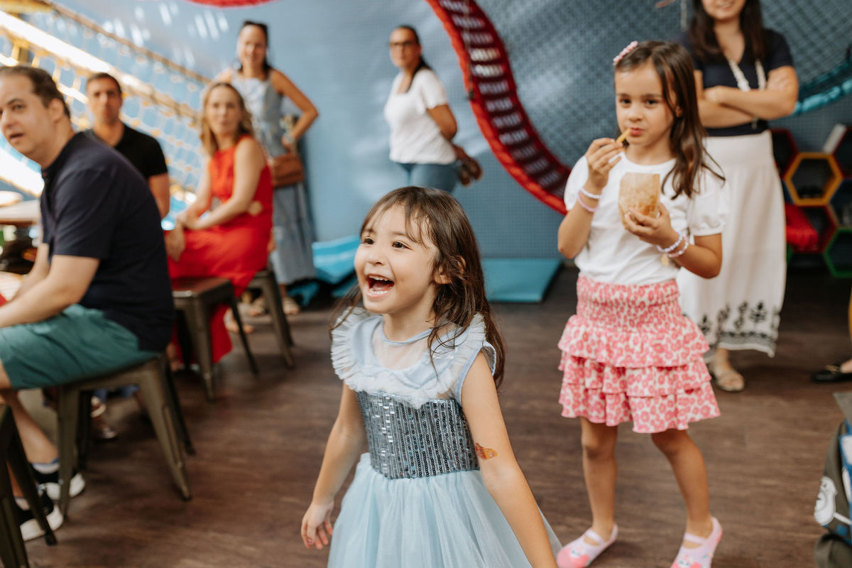 A Olivia chegou com aquele brilho nos olhos de quem sabe que o dia é dela. Esse sorriso que não é ensaiado, que aparece quando a criança entra num espaço decorado para ela e percebe: isso tudo é pra mim!